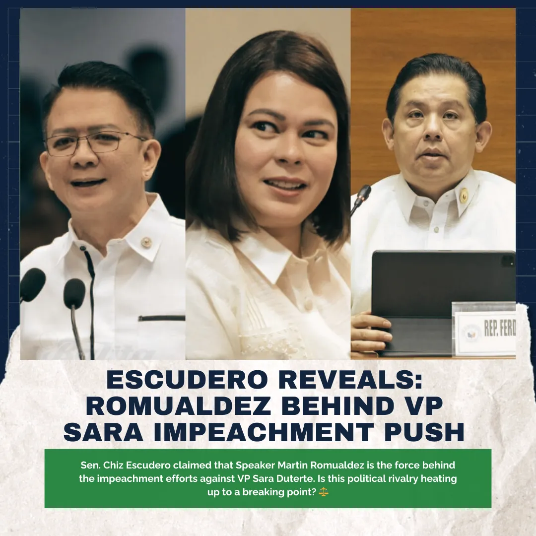 In a surprising turn of events, Senator Chiz Escudero dropped a bombshell revelation that House Speaker Martin Romualdez is allegedly the key figure behind the impeachment moves against Vice President Sara Duterte.